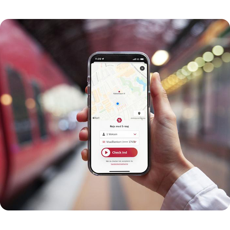 Appen samler alle dine billetter ét sted – Orange-billetter, Check ind, Pendlerkort og pladsbilletter. Den kan bruges til både tog, bus, metro og letbane, og når du checker ind eller køber billet til toget, optjener du point*, som kan bruges i 7-Eleven på stationen.